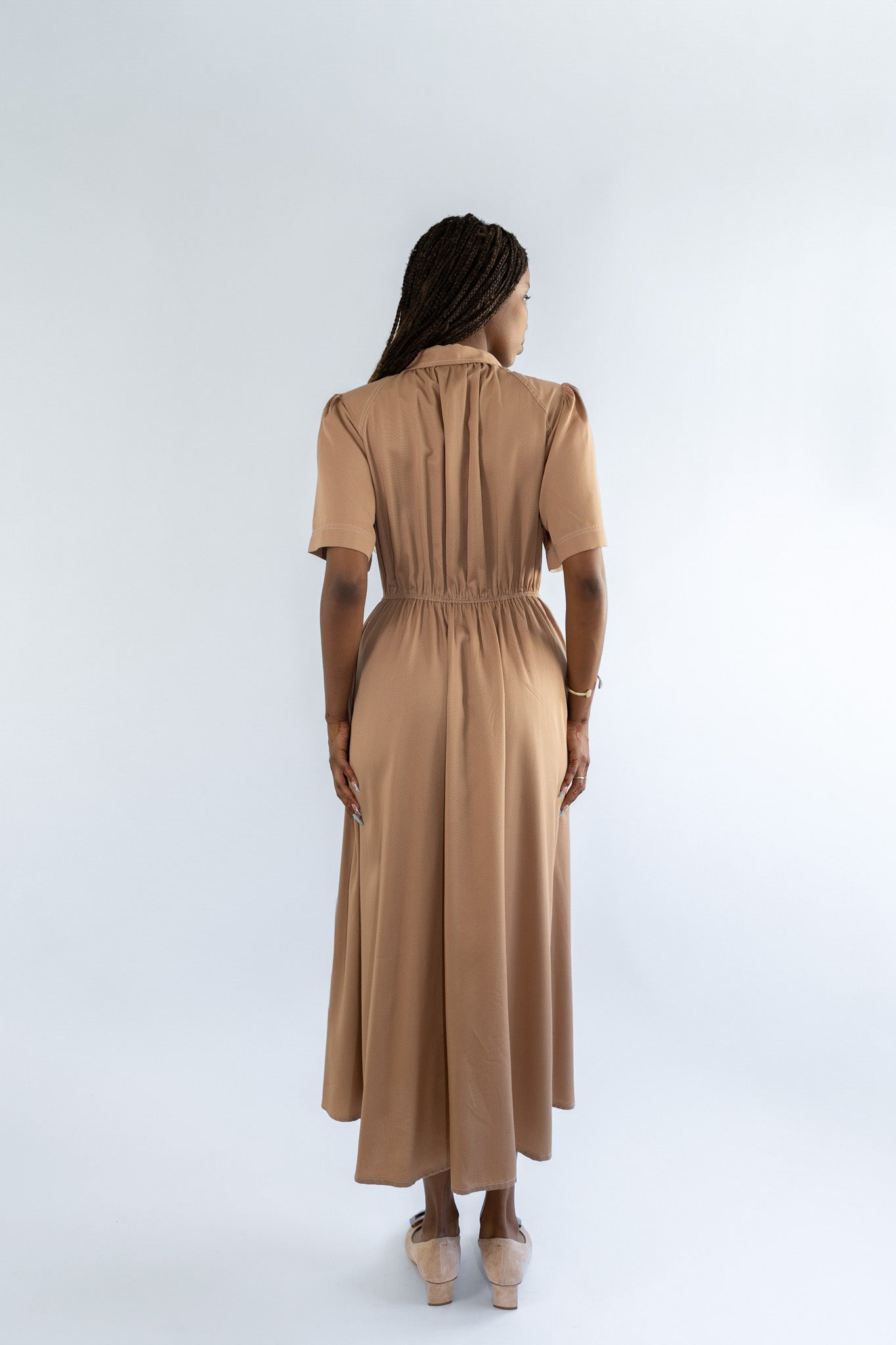 Carefully considered paneling details shape and flatter the body in the Calliope midi dress, crafted from the softest draping twill, and featuring contrast topstitching details throughout. The flared skirt finishes the dress in an effortless and edited silhouette.