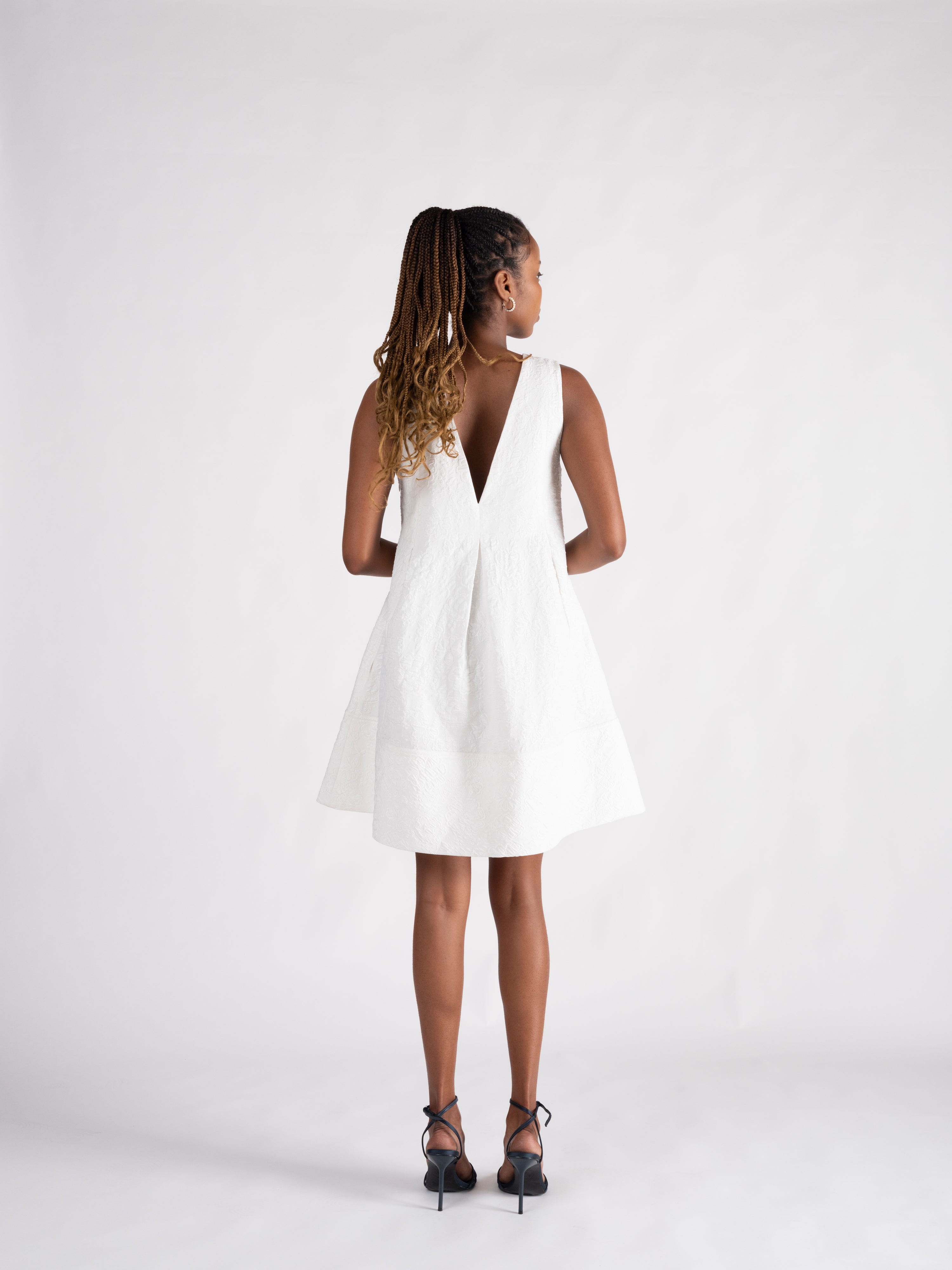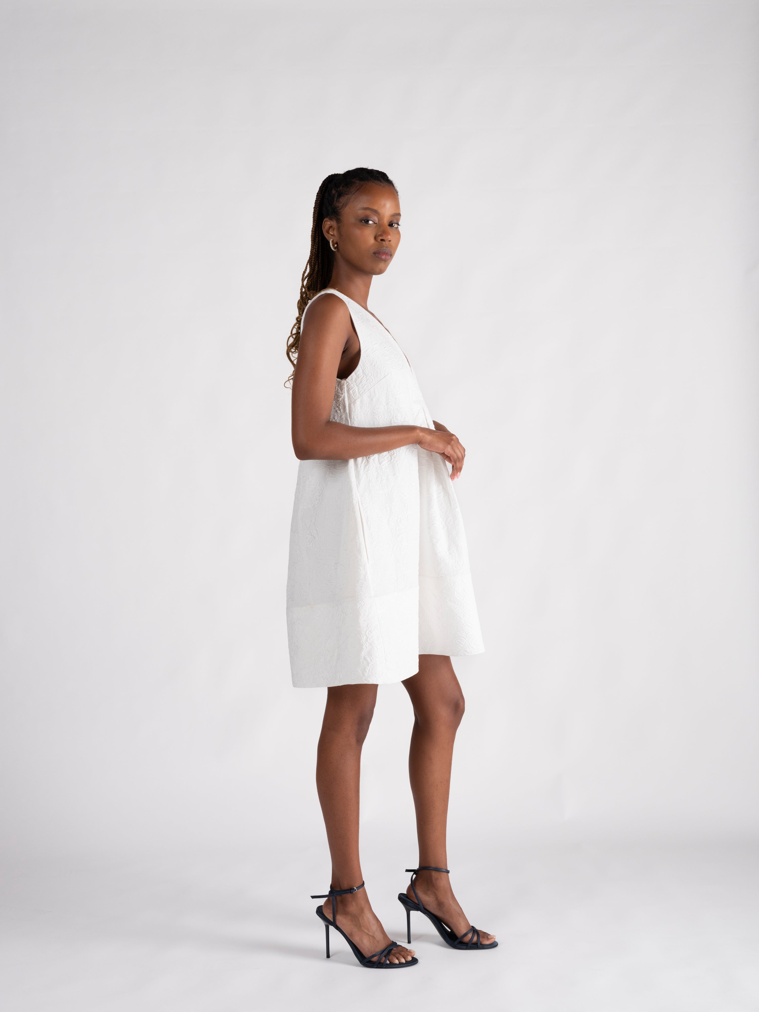 Our classicly chic Katherine mini dress is reimagined in an ivory metelasse fabric with a subtle, romantic floral texture impressed into the fabric. Dress her up for a holiday soirée, a bridal shower, or chic dinner party; she's as versatile as she is effortless.