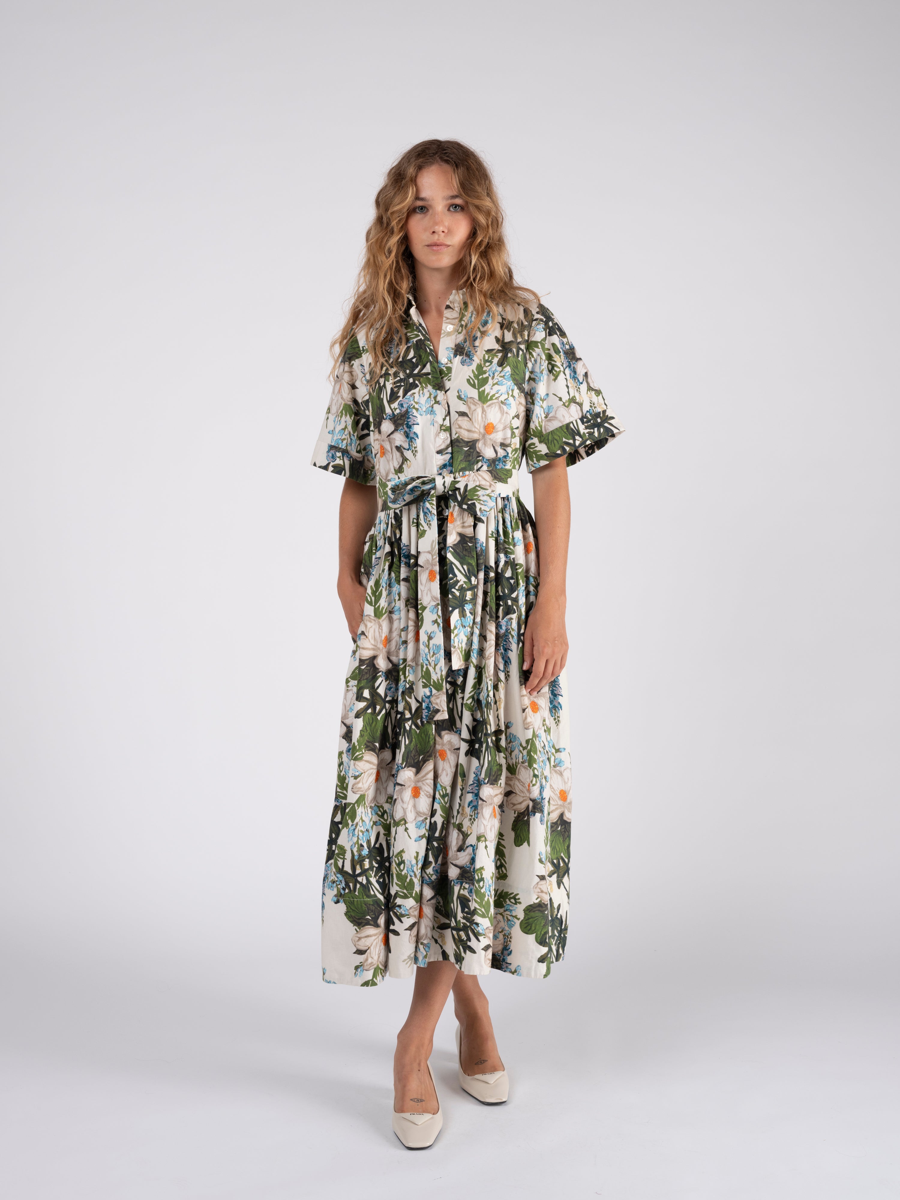 A modern update on a classic button-down shirt dress in crisp cotton poplin. Dress cinches at the waist and can be further tied with a self-fabric tie belt. Lined in cotton voile.A modern update on a classic button-down shirt dress in crisp cotton poplin. Dress cinches at the waist and can be further tied with a self-fabric tie belt. Lined in cotton voile.