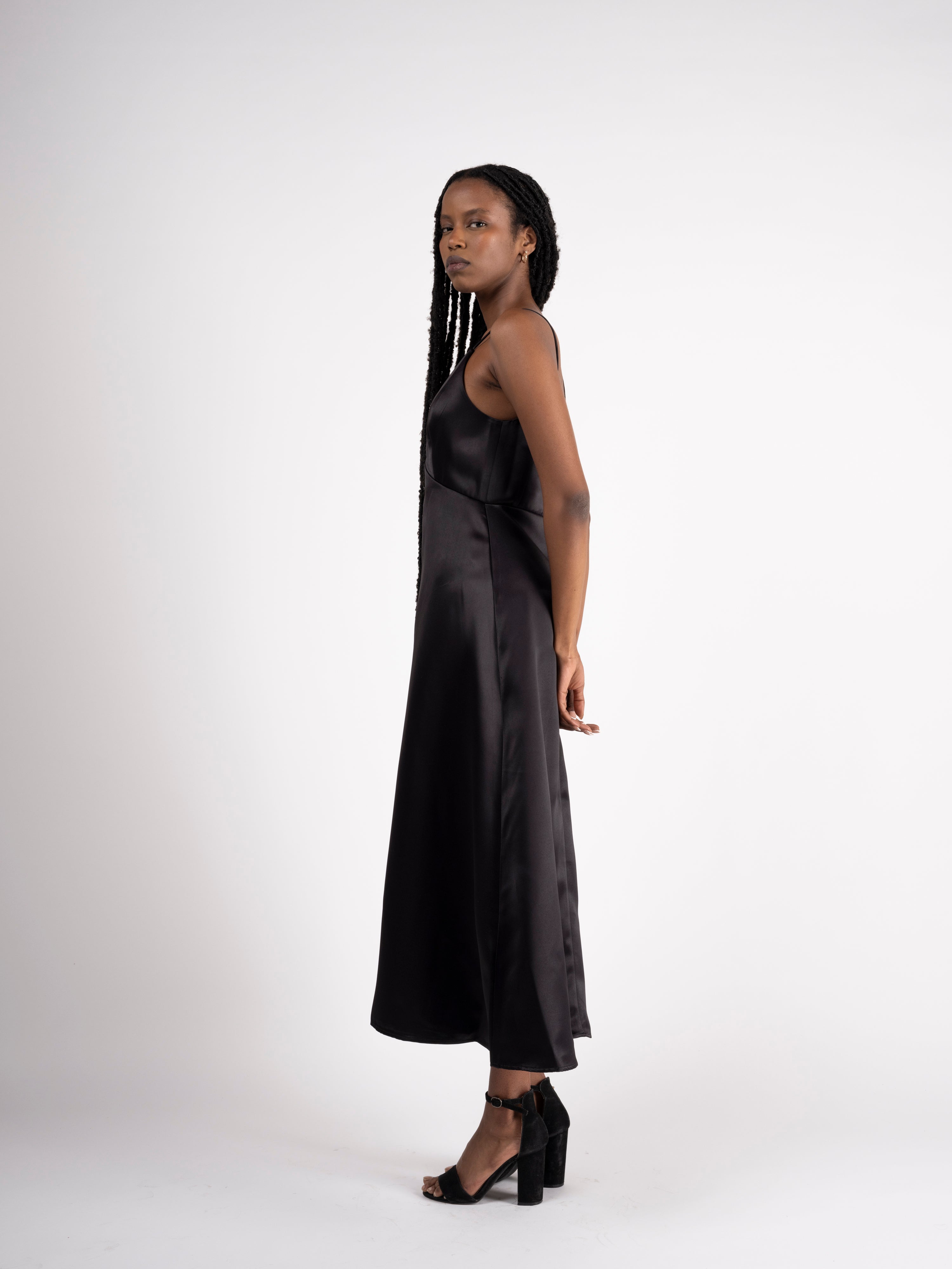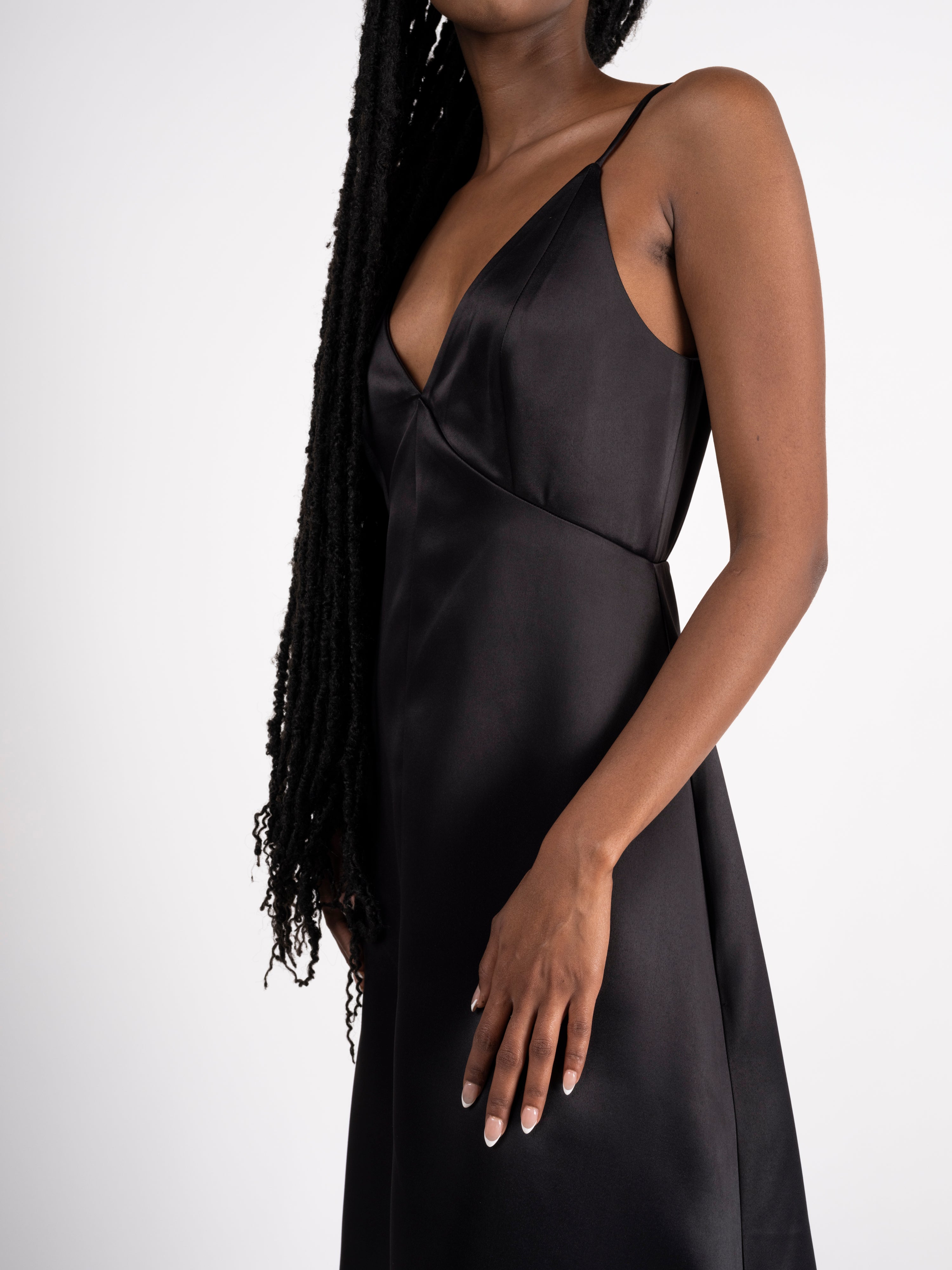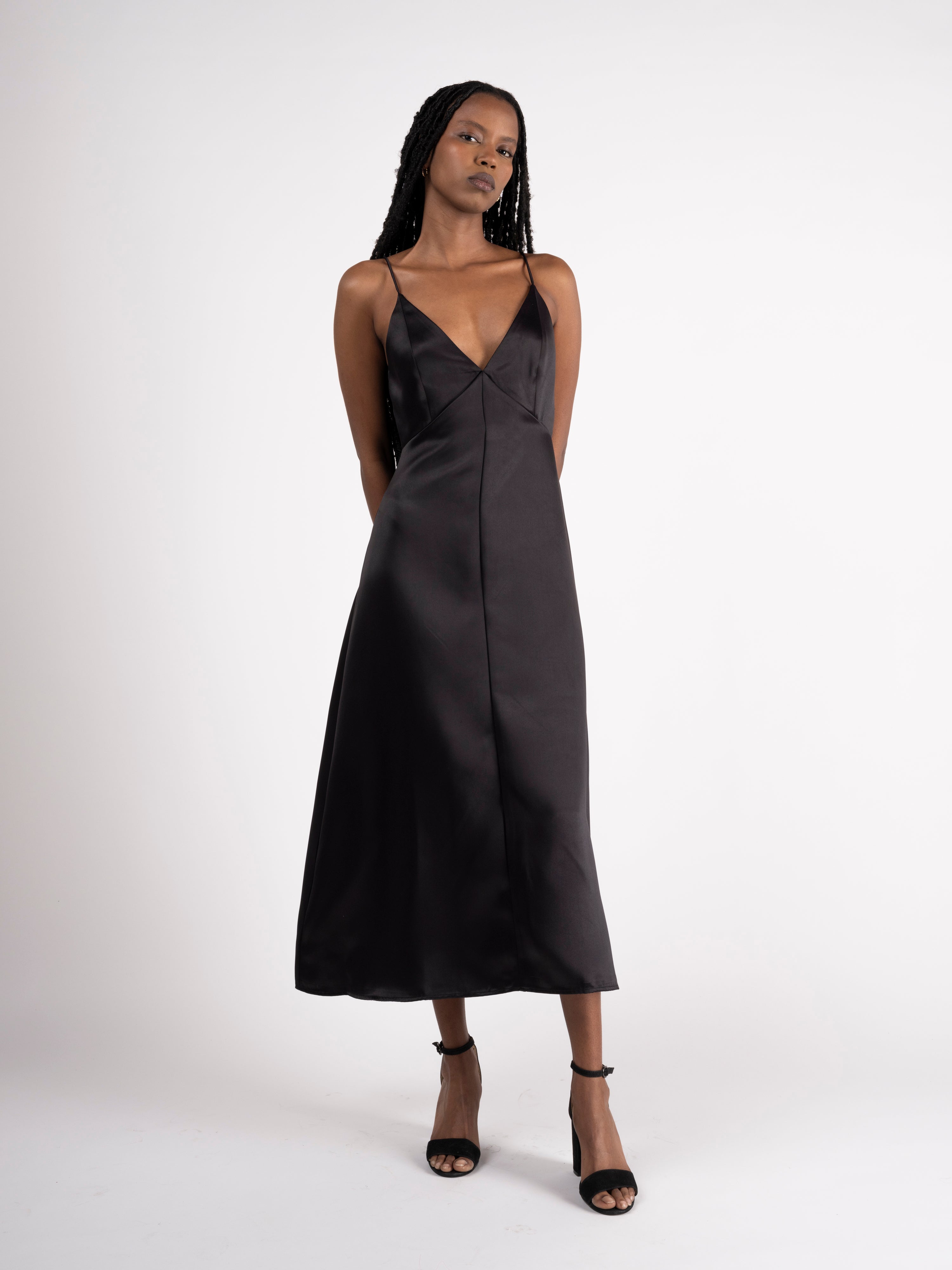 Feel timeless in a slip dress with a special colorblock twist, making this silhouette a shining jewel. Buttery soft satin can speak for itself.
